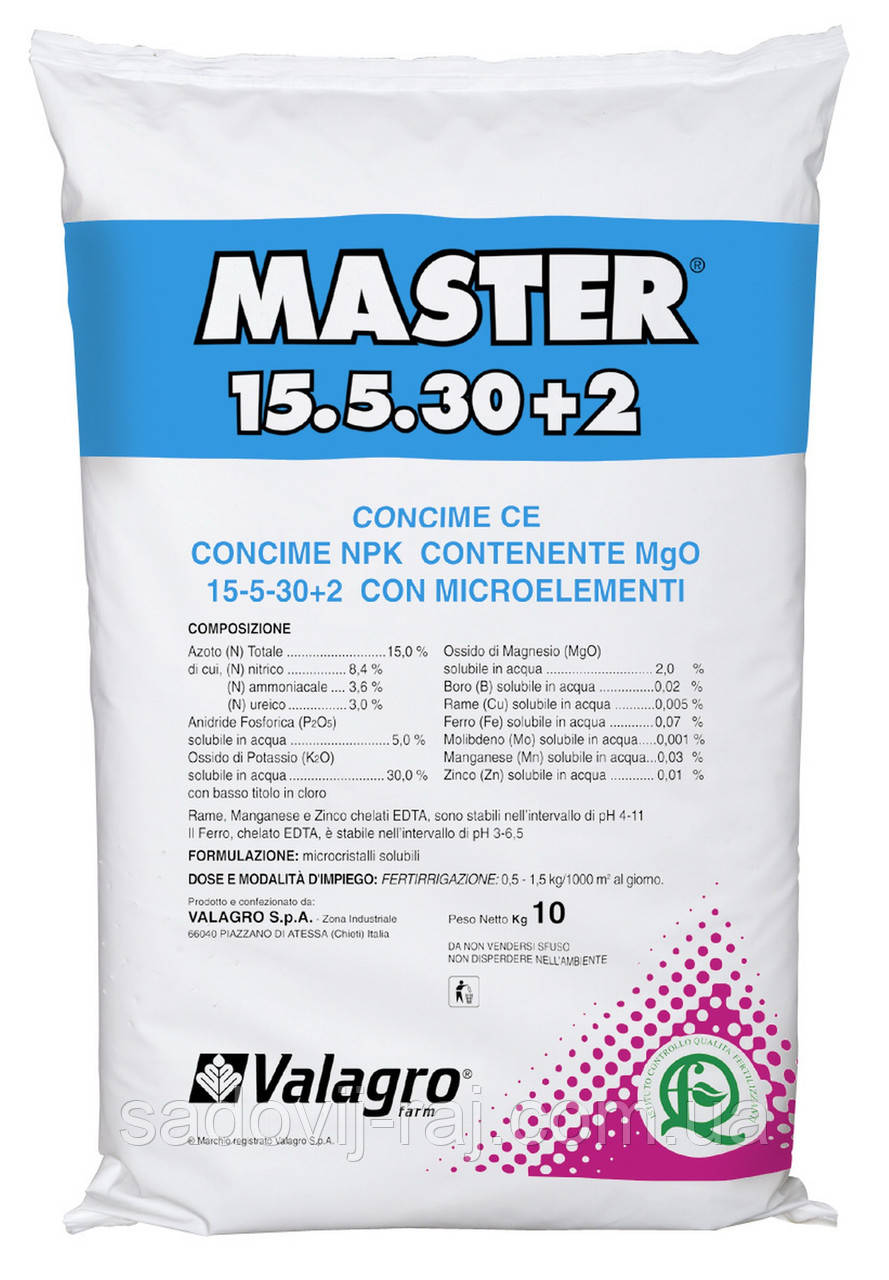 Добриво Мастер Master 15+5+30+2 10 кг Валагро Valagro Італія